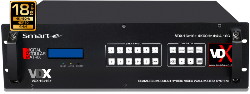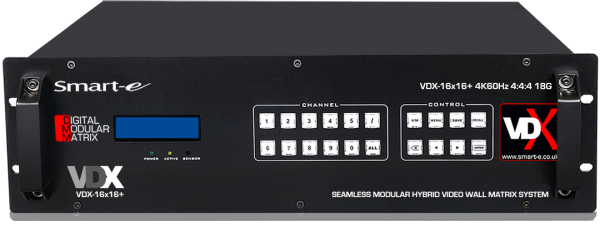 The VDX-16×16 is a 4K60Hz professional flexible Digital Modular Matrix (DMM+) capable of selecting between 16 different devices to 16 displays. Seamless switching together with output video scaling provides a professional image selection with the option of creating a Video Wall and Multiviewer, whilst 4-way modular input and output cards cater for a wide range of signal formats.